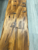 This sturdy bench is made from the main support beam from a 120 year old building that once stood about an hour South of Ottawa in Mallorytown. This historic beam was hand hewn (you can still see the marks left from the axe!) from a single solid log and spent most of its days holding up the rafters and roof of a carriage house. It's new life can be holding up loved ones in your home!