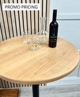 This classic design is perfect to sit with a friend and share conversation over your favourite drink. With a solid maple circular top and steel base, this bar-height table will add quality to a classic to add to your home, bar, or man cave.
