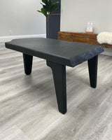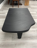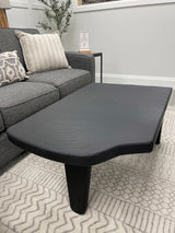 Skillfully handcrafted from solid ash, this coffee table makes a stylish addition to any room. A durable and perfectly sized top features elegant curves and a live edge. It rests on three shapely legs that add more visual interest to the overall design. A black oil finish allows the natural wood grain to come through and completes this unique table.