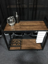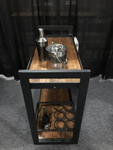 This bar cart is the perfect addition to any kitchen, living room, bar or man cave! Its sturdy frame and solid wood platforms offer plenty of space to store your entire liquor collection as well as glassware, mix and bartending utensils! The easiest way to move the party from room to room!
